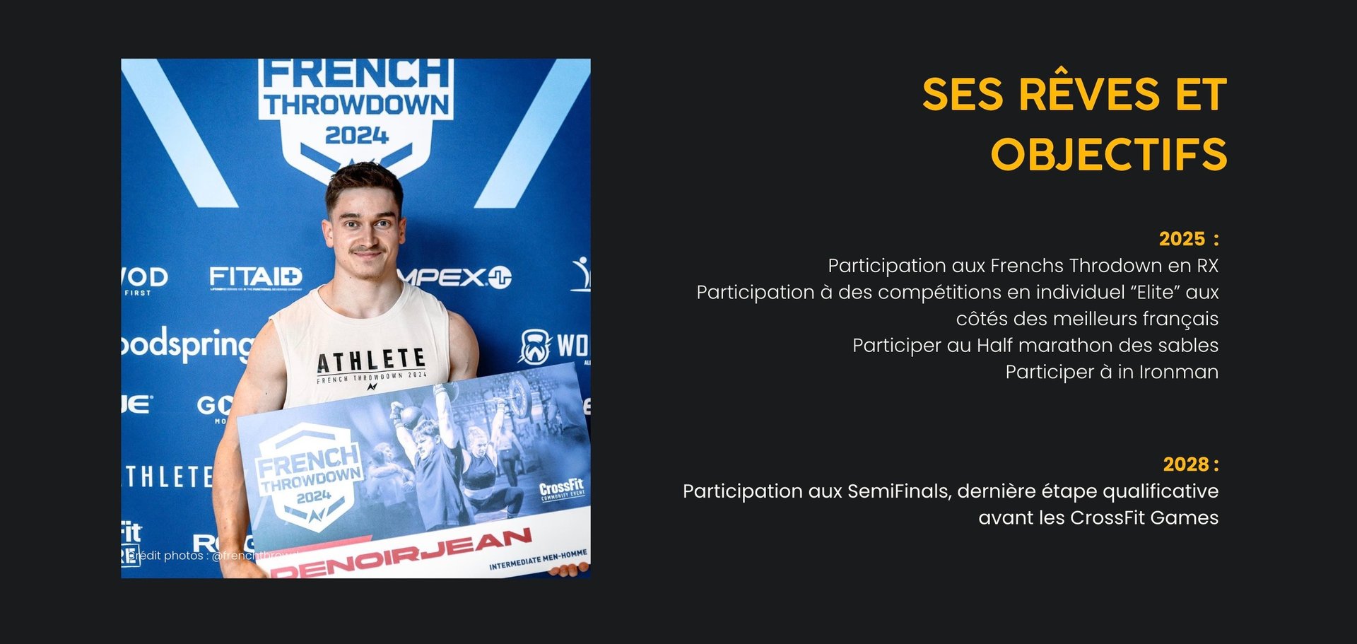Grâce à son engagement et sa persévérance, elle se positionne aujourd'hui comme une athlète montante de ce sport, toujours prête à repousser ses limites et à inspirer la communauté CrossFit par ses performances et sa progression constante.