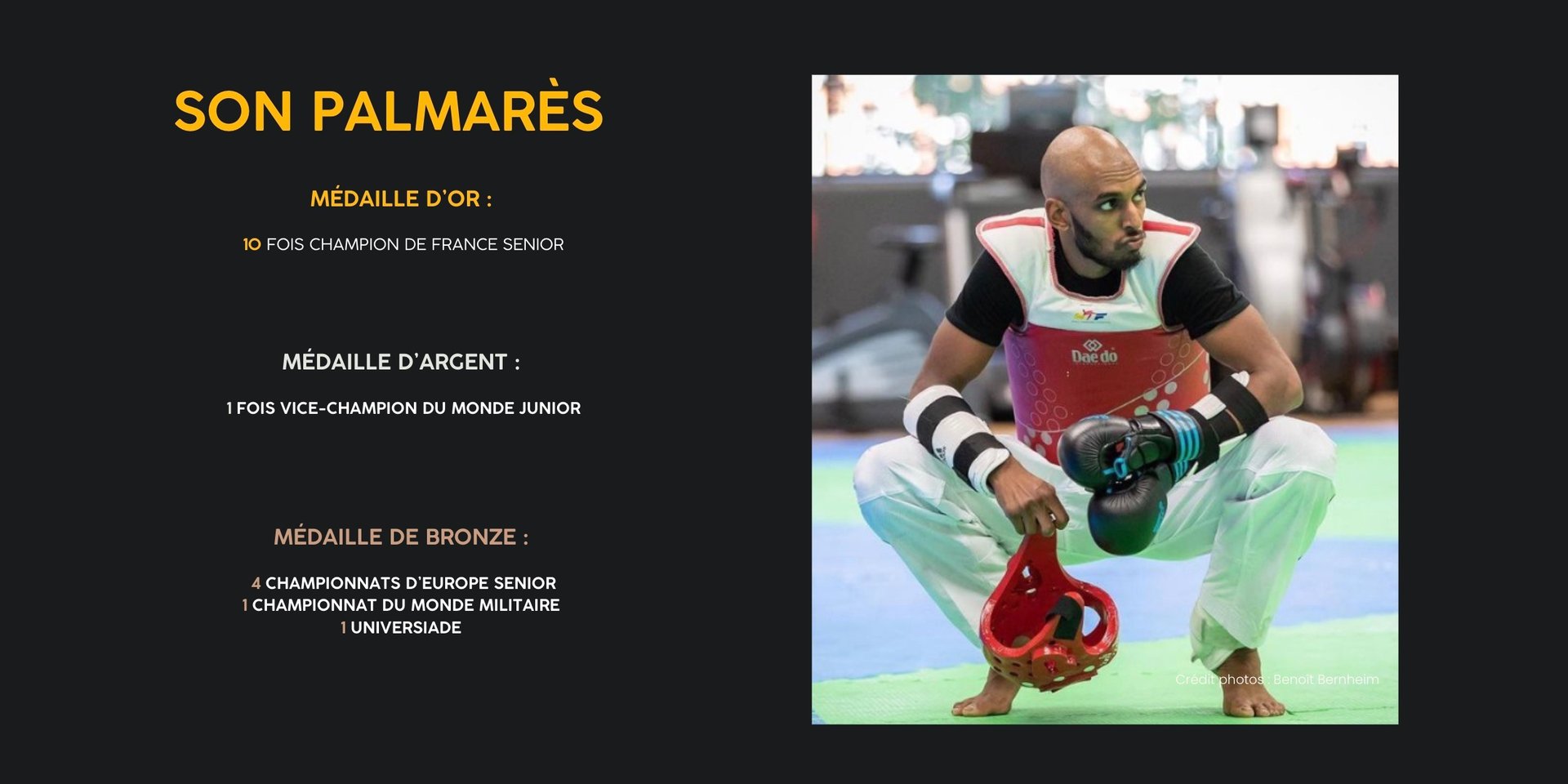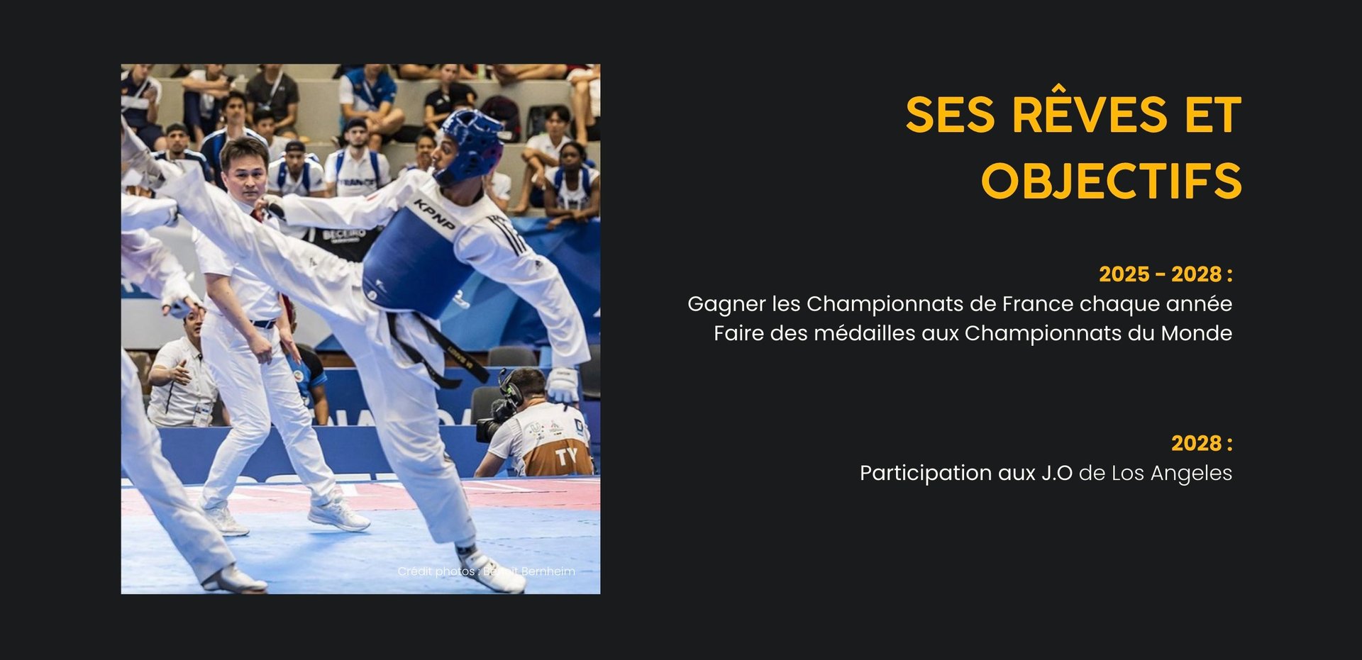 Son engagement total dans le taekwondo, combiné à son désir constant de s'améliorer, illustre parfaitement cette volonté de toujours viser plus haut.